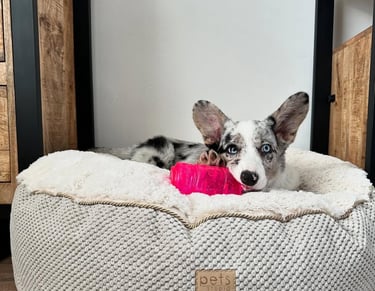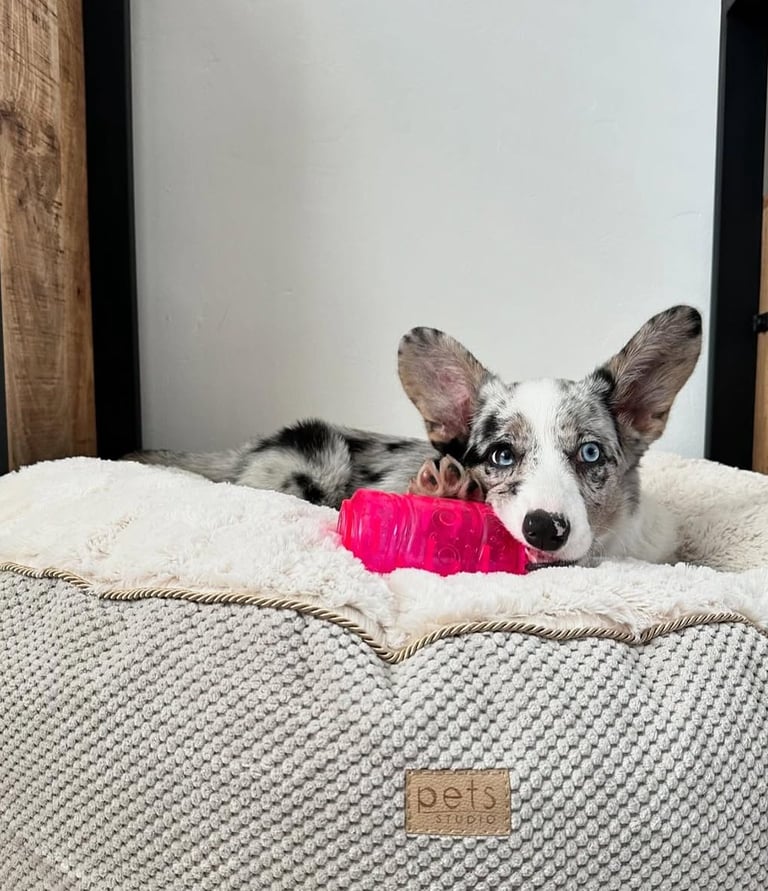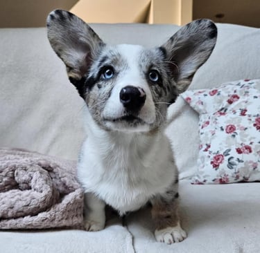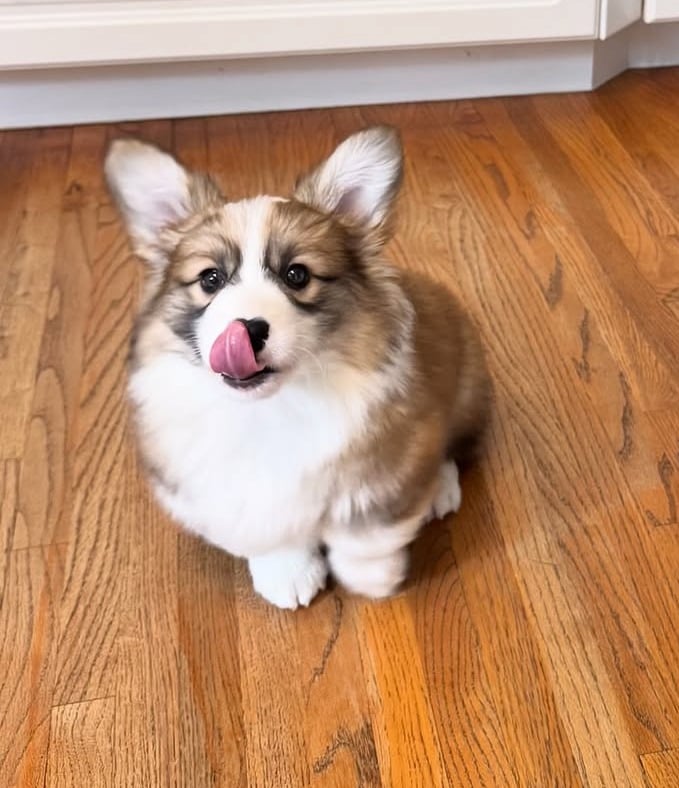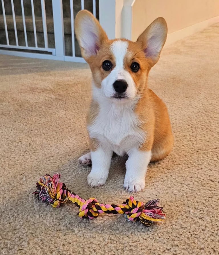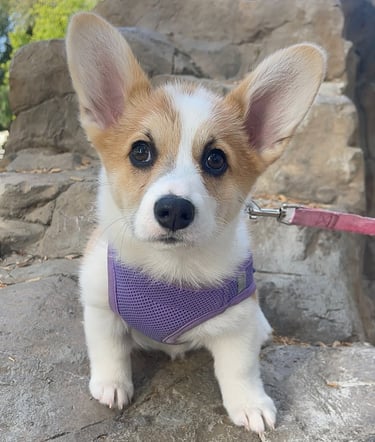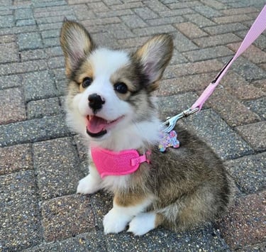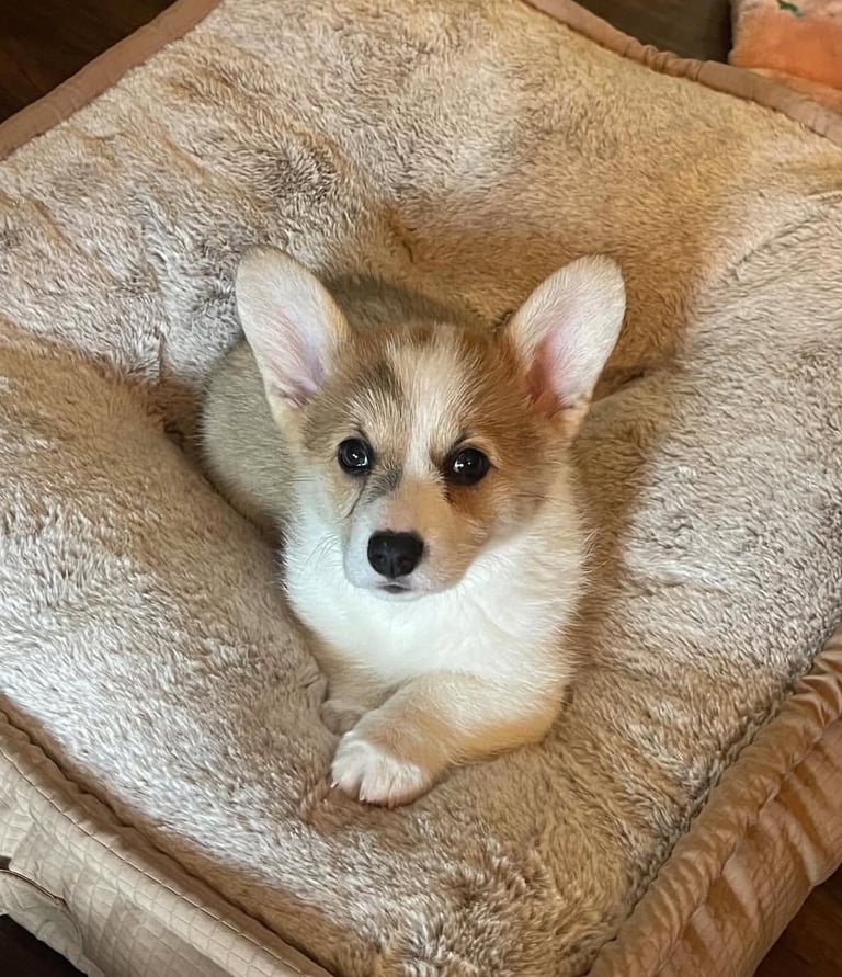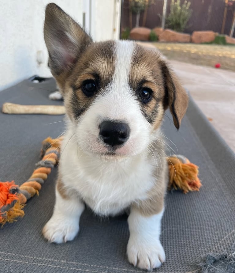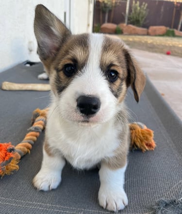 Say hello to Rhexa! She is a loving Corgi girl and would love to be your loyal companion! She loves being pampered, snuggling, playing with her siblings, and most of all, eating treats. You'll love all the fun tricks you can teach this smart little girl. Rhexa comes with a microchip, AKC registration, and her tail docked. She is ready to be your girl! Are you ready for her endless snuggles?