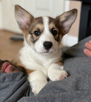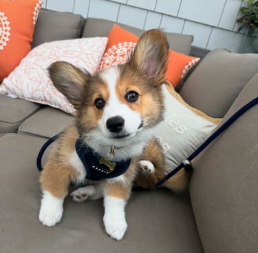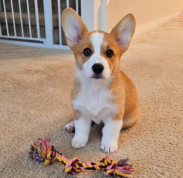 Hi, it's nice to meet you! I'm Rex, the Corgi puppy! I have a very creative and intelligent mind. I can find anything to play with, and I never get bored. I love learning new things and exploring. I can't wait to see what you have in store for me. We will have so much fun together. I will promise to be your loyal companion and share all my love with you. Won't you choose me today?